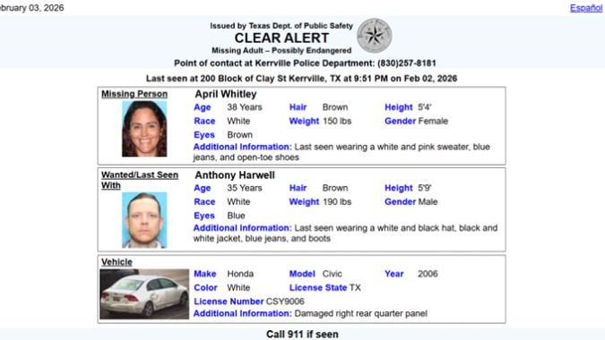 Texas police are seeking the public’s help in finding a woman who went missing from Kerrville Monday night and could be in danger.