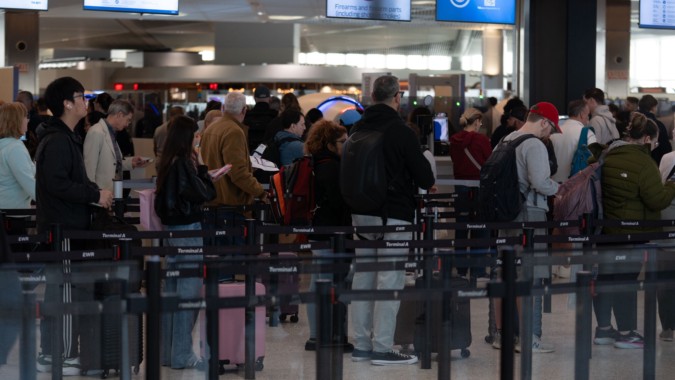 Long security lines formed by 5 a.m. at Austin-Bergstrom International Airport, with over 30,000 passengers expected to be screened on Monday despite projections of typical volume.