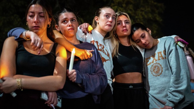 University of Texas students gathered to honor those killed or injured in Sunday morning's mass shooting at Buford's on West Sixth Street