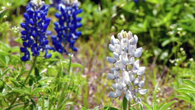 Rare white bluebonnets, caused by a genetic mutation, were spotted at Inks Lake State Park as drought impacts this year's bloom.