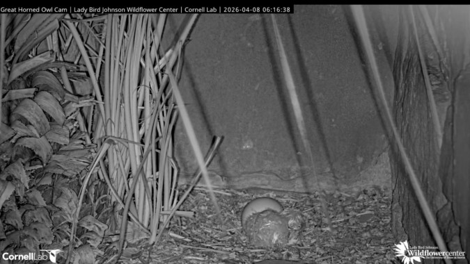 Athena, the Lady Bird Johnson Wildflower Center’s great horned owl, welcomed a new owlet. A second egg will hatch soon.