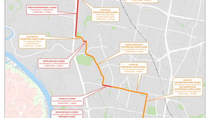 Road closures in Austin begin as early as 3 a.m. Sunday for the Spurs Austin International Half Marathon. See the full list and map.