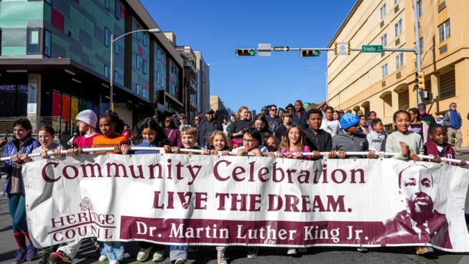 Hundreds rallied at the Texas Capitol before thousands marched through Downtown Austin to Huston-Tillotson University on MLK Day—see the photos.
