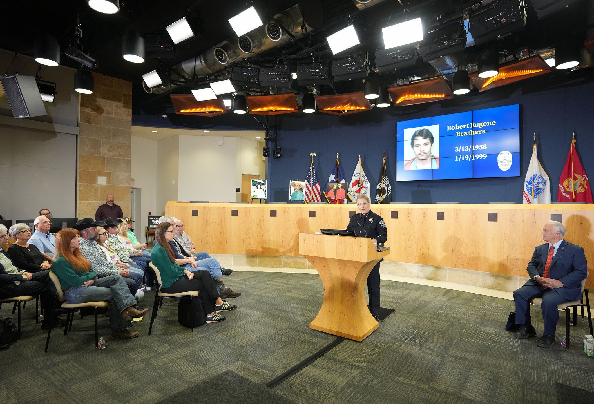 Mayor Kirk Watson and Travis County District Attorney Jose Garza attended, along with Mindy Montford from the Attorney General’s Office. Original detective John Jones spoke to reporters afterward.