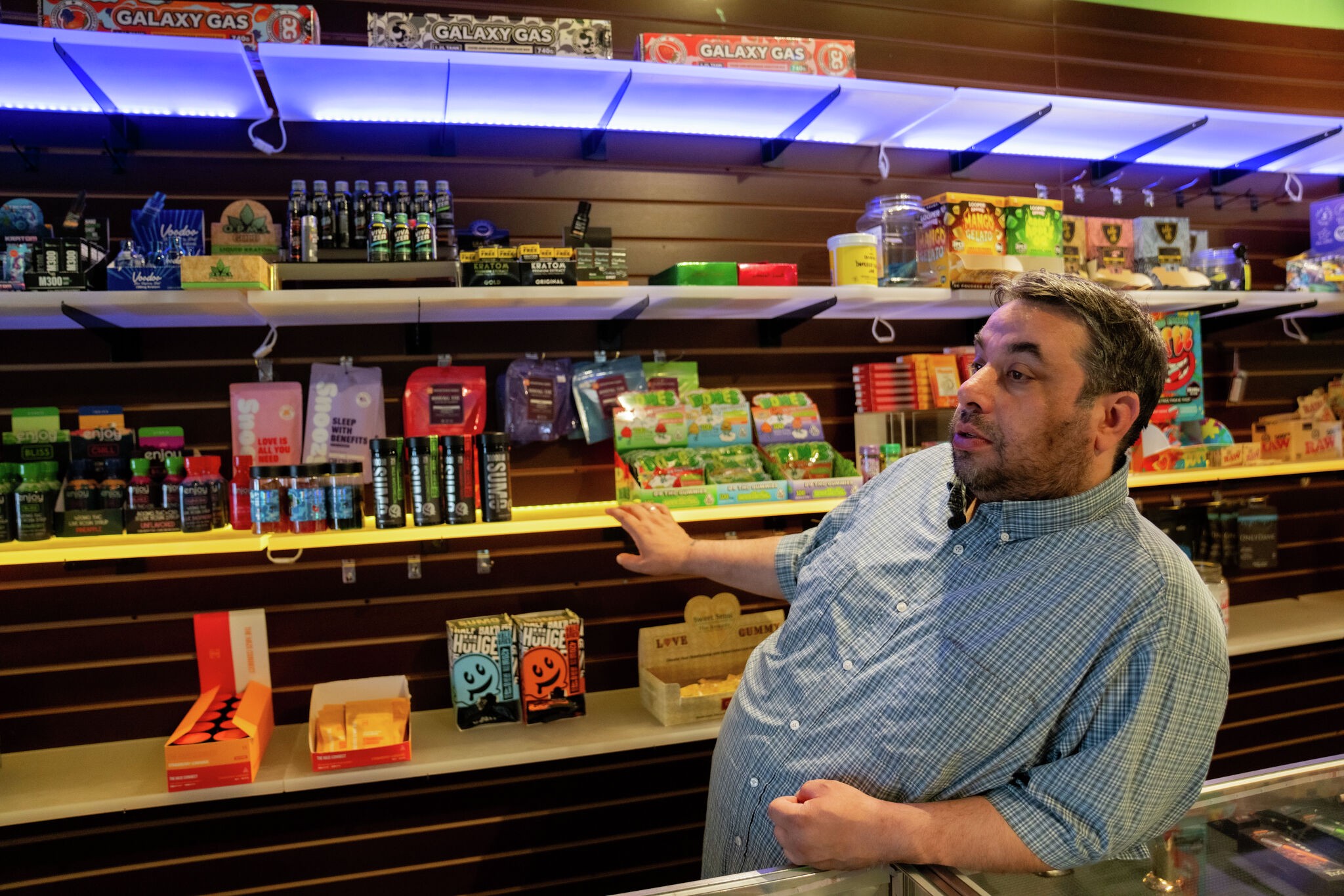 Owner Kaab Malik moves through the store, straightening what is left: rows of cartridges, scattered gummies and glass pieces spaced farther apart. Where inventory once filled every inch, there are now empty pockets that feel less like disorganization and more like a business bracing for change.
